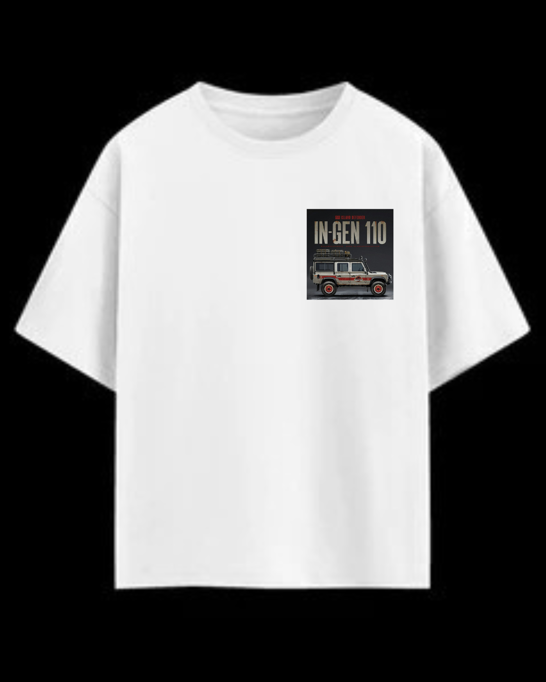 Front Design: Minimal chest print featuring IN-GEN 110 off-road Land Rover.